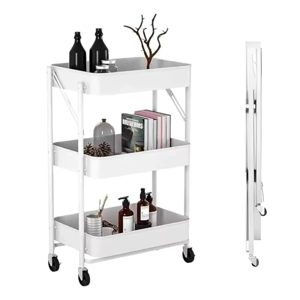 Este carrito es la solución versátil para el almacenamiento en tu hogar, oficina, cocina, peluqueria, donde desees. Con su diseño metálico resistente y sus ruedas giratorias de 360 grados, ofrece comodidad y funcionalidad para organizar tus objetos en tres estantes.