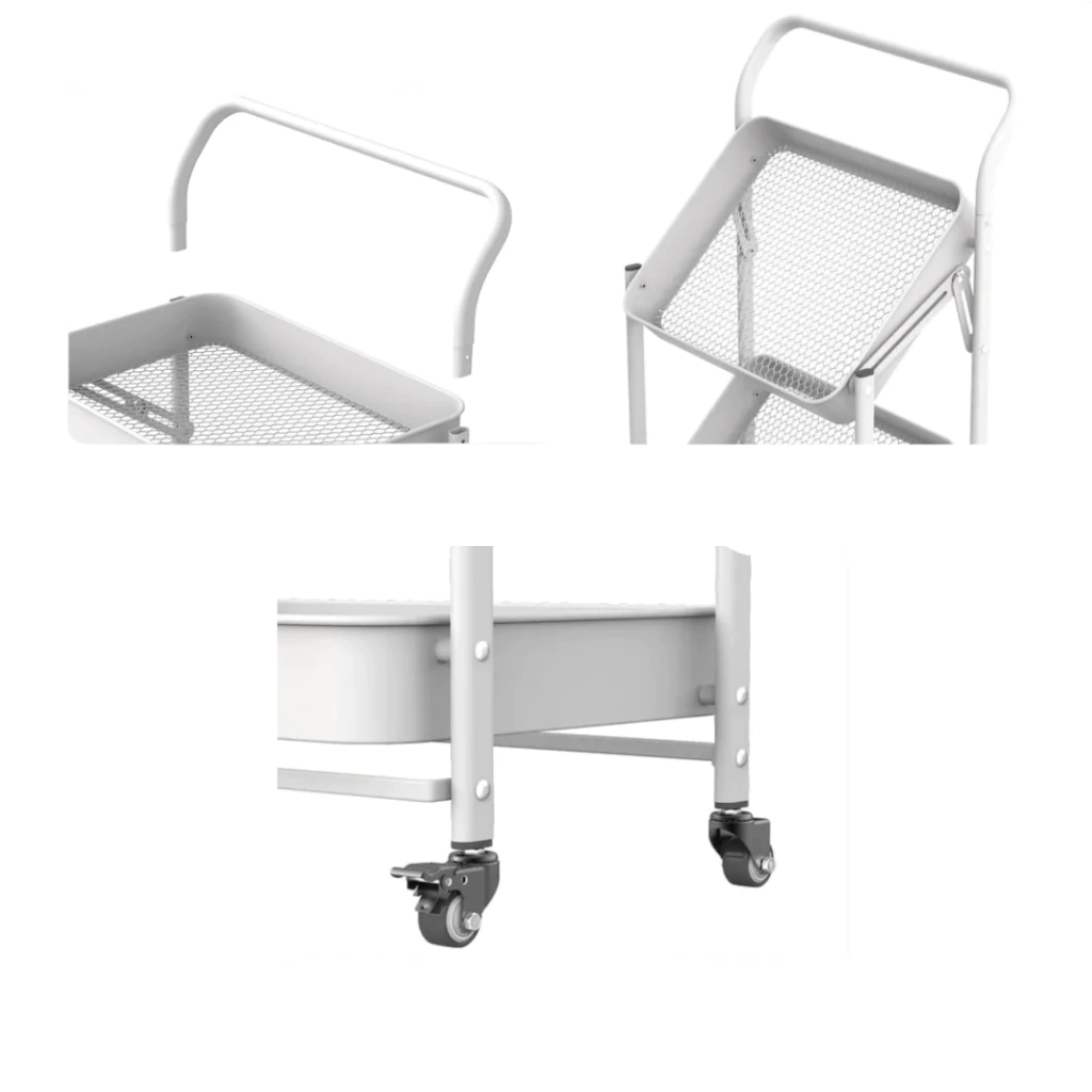 Material resistente: fabricado con metal resistente, este carrito es duradero y puede soportar una variedad de artículos sin perder estabilidad.