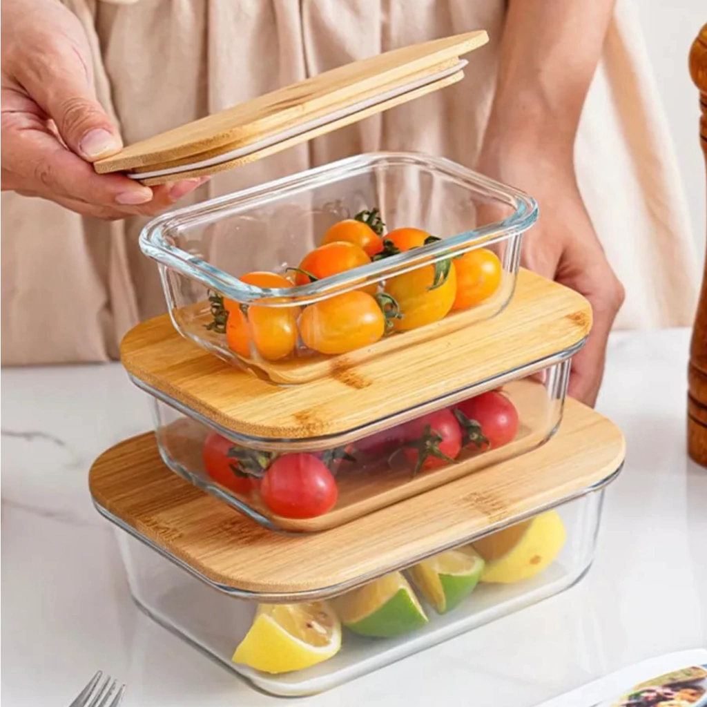 Vidrio resistente al calor. Tapa ecológica de bambú con sello de silicona. Perfectos para organizar con estilo y cuidar tus alimentos día a día.