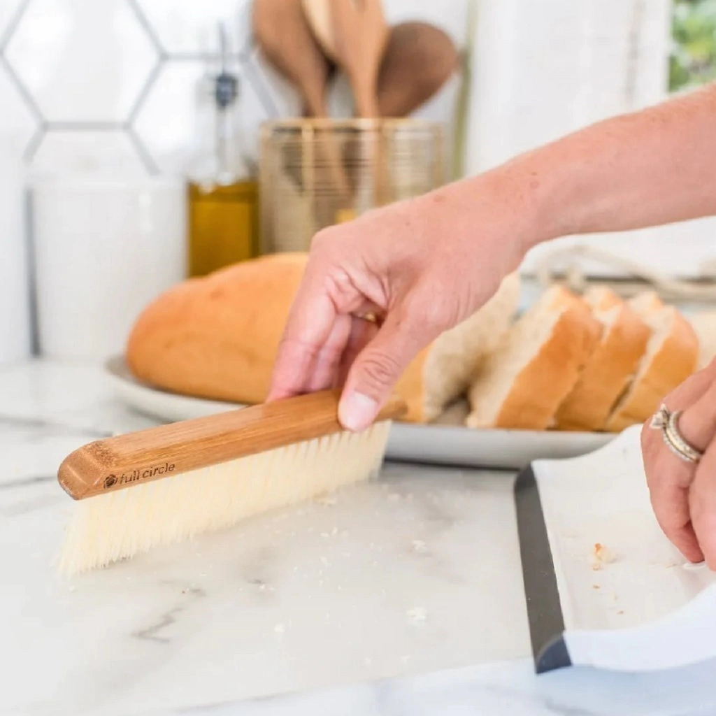 Set de cepillo y pala escurridora ideal para barrer las migas que quedan en las superficies. Su pala permite también eliminar los líquidos derramados reduciendo la utilización y desperdicio de toallas de papel.